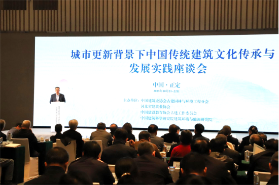 由中国建筑业协会指导,中国建筑业协会古建园林与环境工程分会、中国建设教育协会古建工作委员会、河北省建筑业协会、中国建筑科学研究院建筑环境与能源研究院共同主办的城市更新背景下中国传统建筑文化传承与发展实践座谈会于2025年10月21日至22日在河北正定召开。