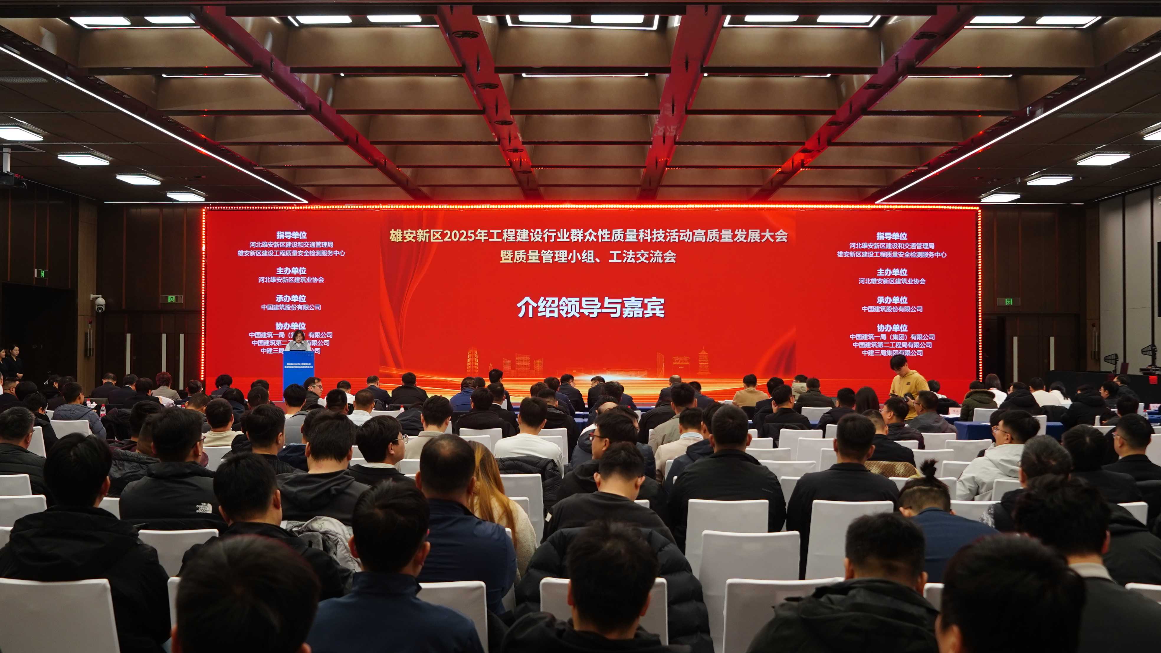 2025年12月30日,在雄安新区建设和交通管理局、新区建设工程质量安全检测服务中心指导下,由河北雄安新区建筑业协会主办、中国建筑集团有限公司承办,中国建筑一局(集团)有限公司、中国建筑第二工程局有限公司、中建三局集团有限公司共同协办的“雄安新区2025年工程建设行业群众性质量科技活动高质量发展大会暨质量管理小组、工法交流会”成功举办。活动立足国家战略布局、对标国家标准,旨在深化先进质量管理方法应用,加速科技创新成果转化,为锻造更高水平的“雄安质量”汇聚行业智慧,为中国工程质量不断地提升搭建交流桥梁。大会吸引了近500名行业代表参与。