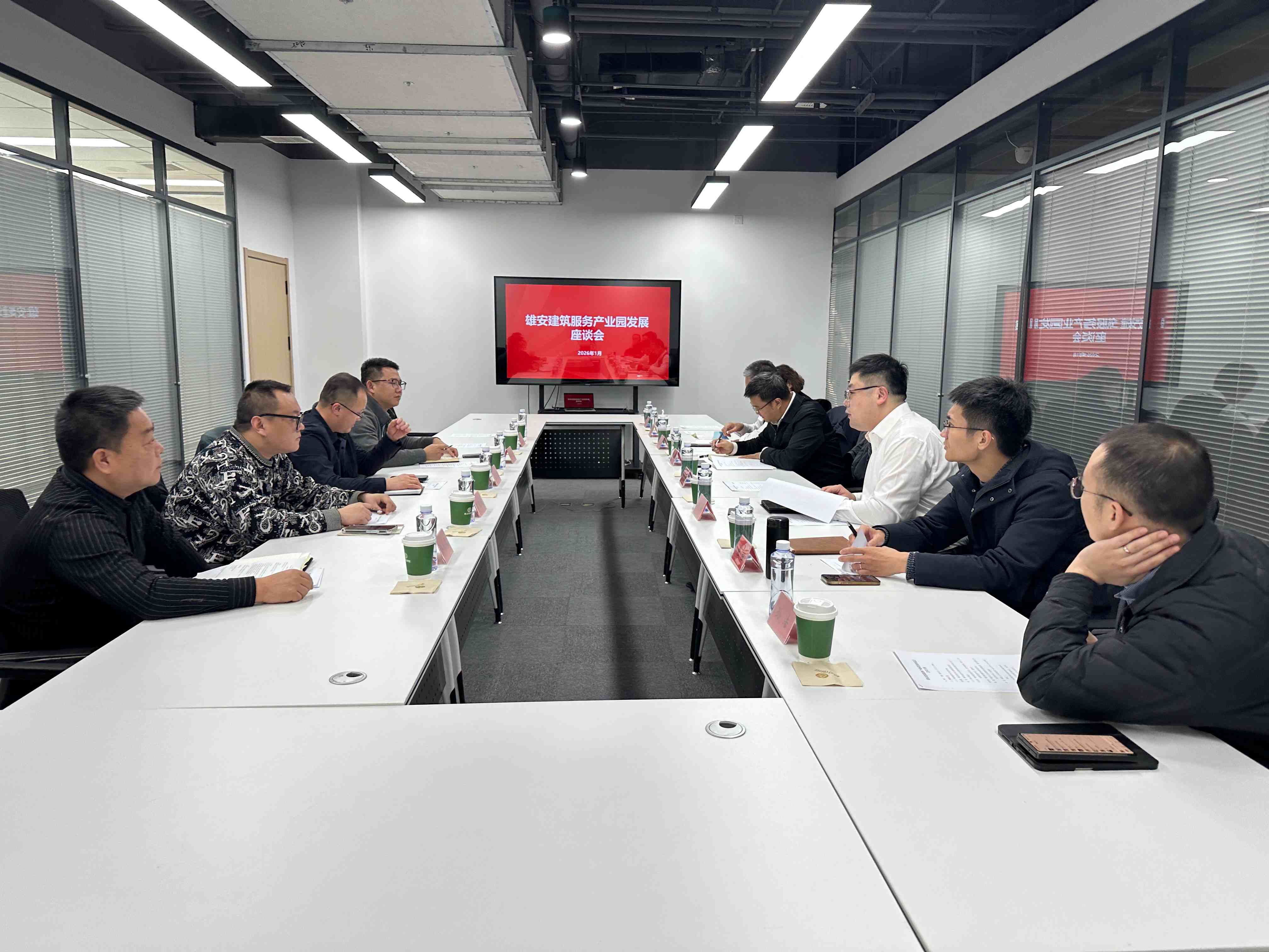 在雄安人才发展集团总经理助理、雄才服务公司党支部书记、总经理杨潇的引导下,调研组实地走访了雄安建筑服务产业园的一层展厅及八层入驻企业办公区,对园区规划定位、企业入驻现状及产业运营服务模式进行了深入考察。