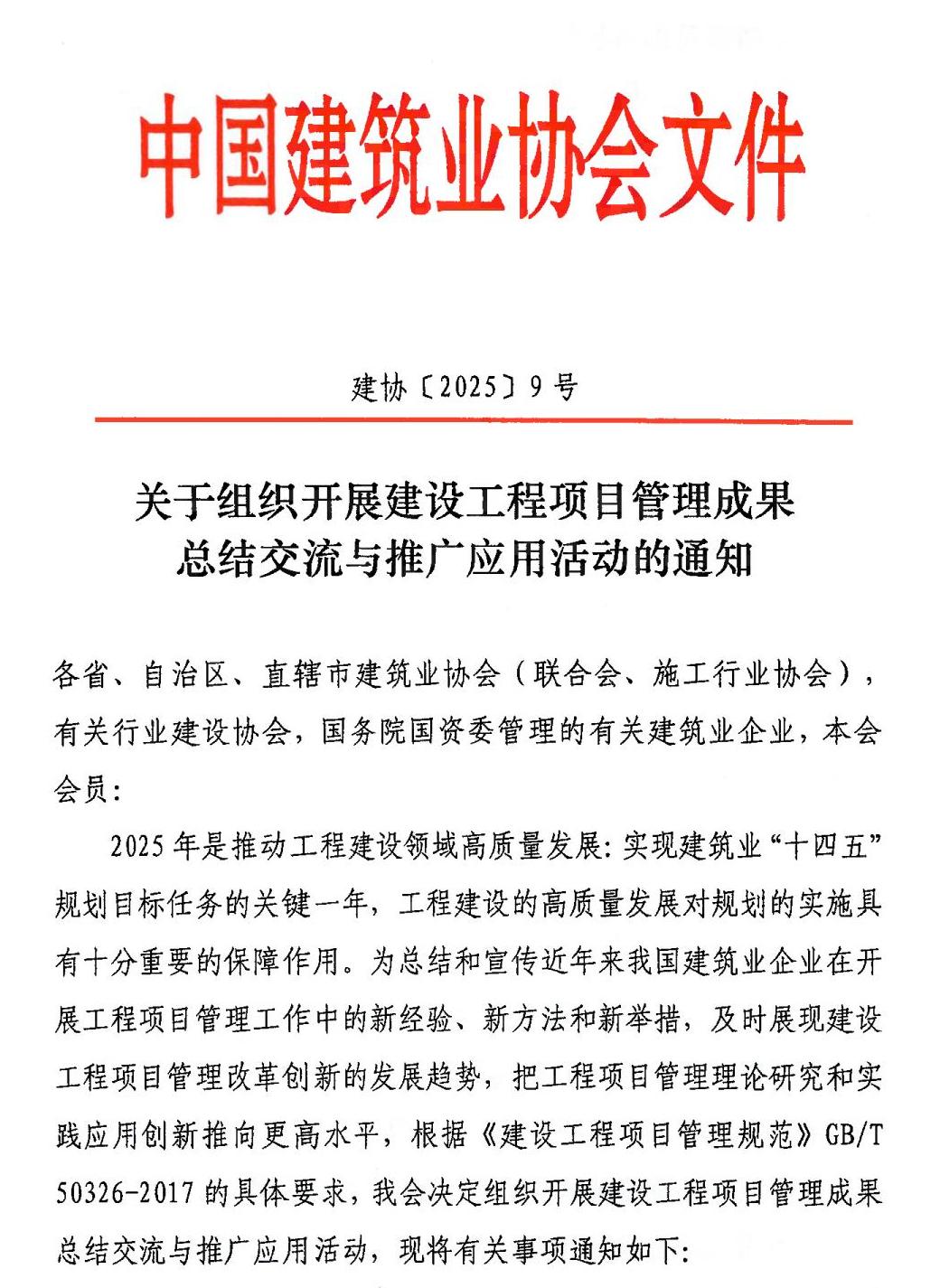 转发中建协《关于组织开展建设工程项目管理成果总结交流与推广应用活动的通知》