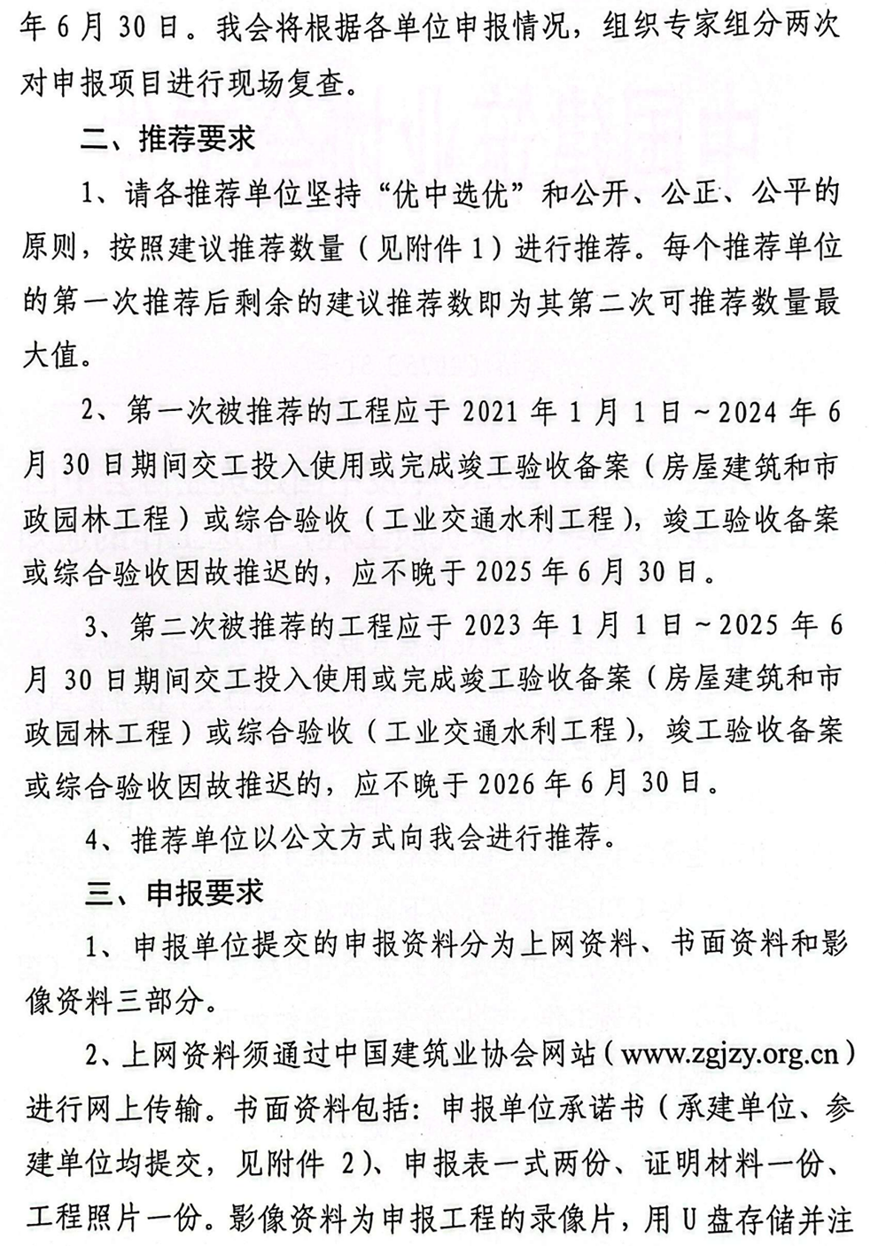 关于开展 2024~2026年度中国建筑业协会中国建设工程鲁班奖(国家优质工程)评选工作的通知