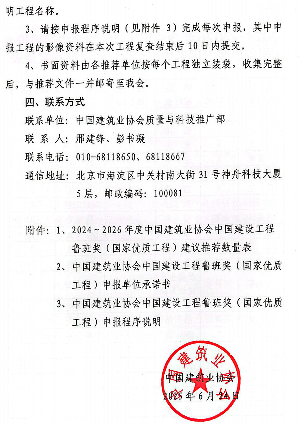 转发中建协《关于开展 2024~2026年度中国建筑业协会中国建设工程鲁班奖(国家优质工程)评选工作的通知》