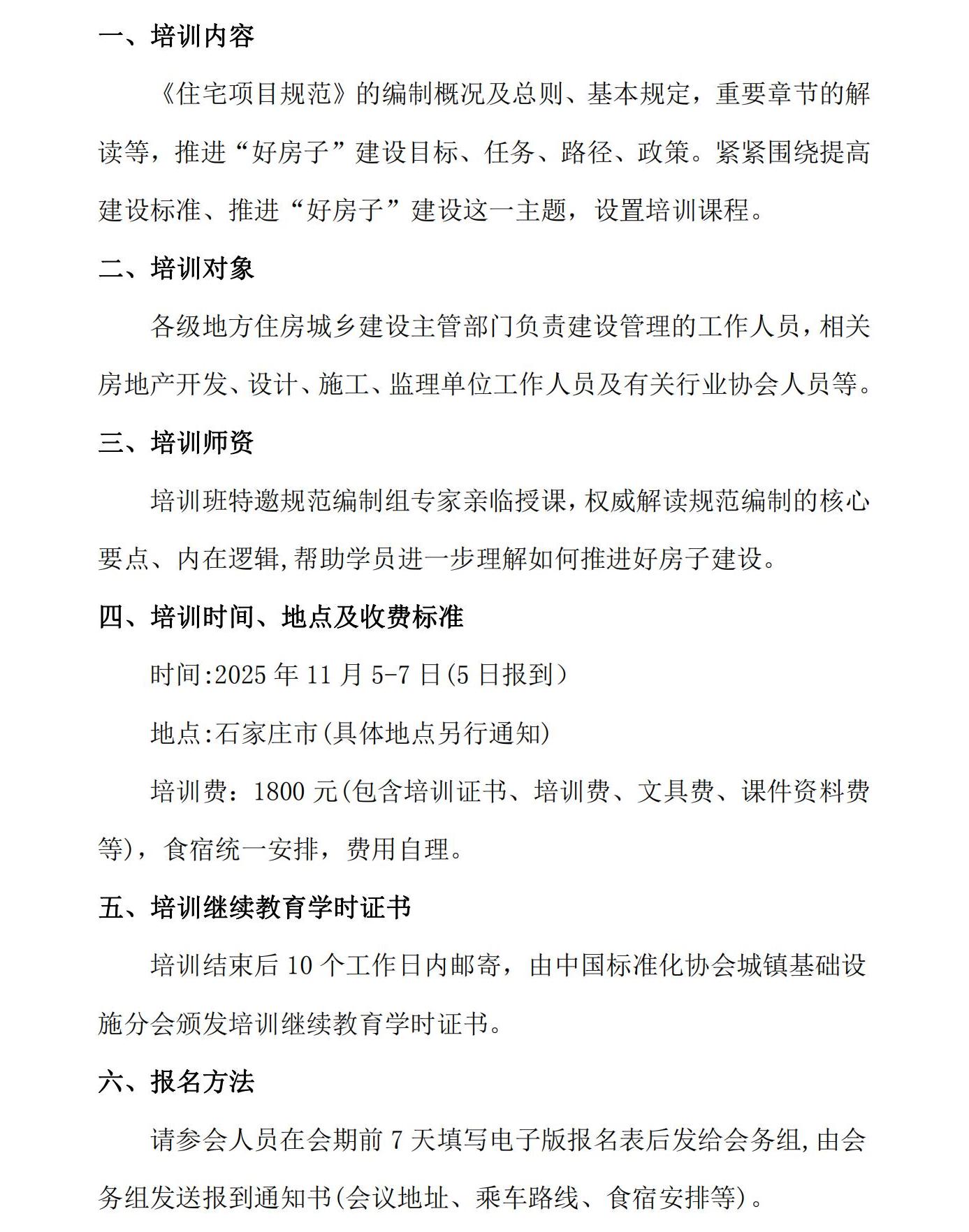 附件:《关于举办好房子国家标准宣贯及工程质量管理培训班的通知》