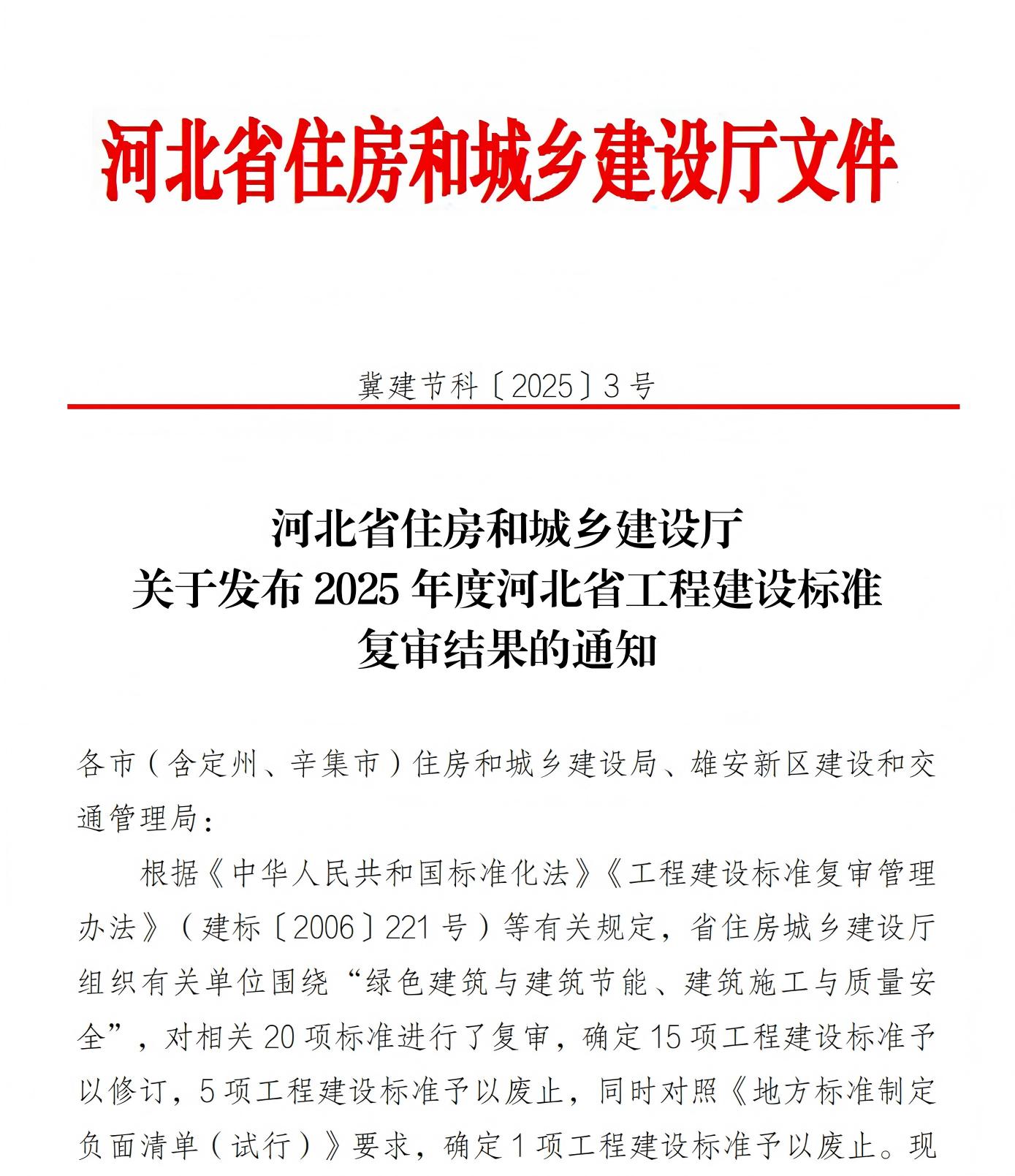 转发省住建厅《关于发布2025年度河北省工程建设标准复审结果的通知》