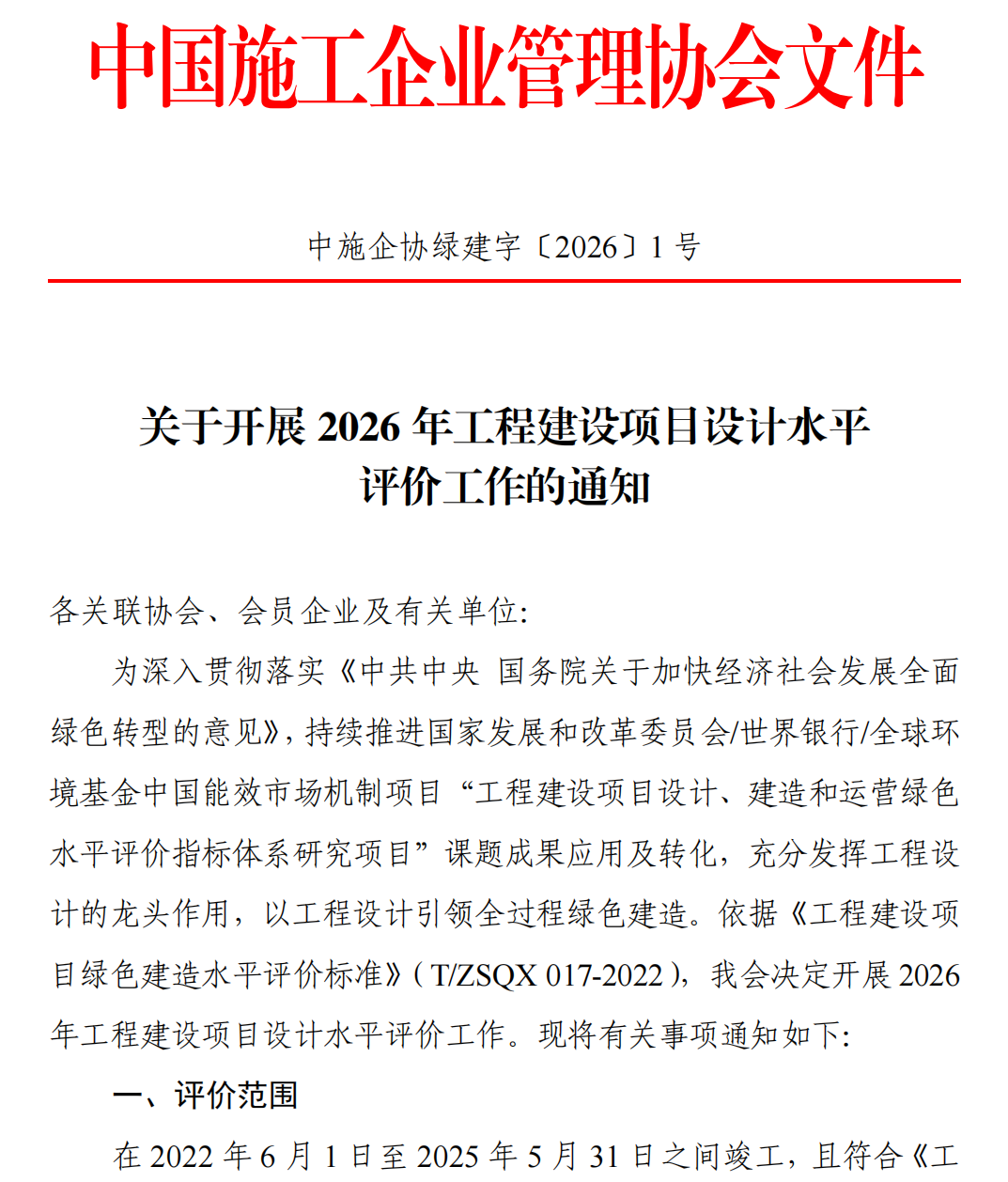 转发中施企协《关于开展2026年工程建设项目设计水平评价工作的通知》