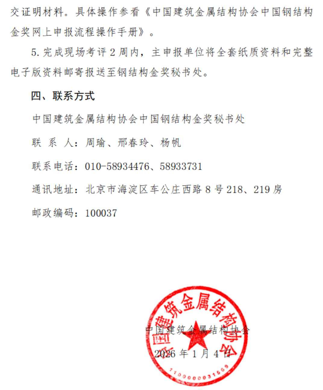 转发中国建筑金属结构协会《关于开展第十七届"中国建筑金属结构协会中国钢结构金奖"工程评选工作的通知》