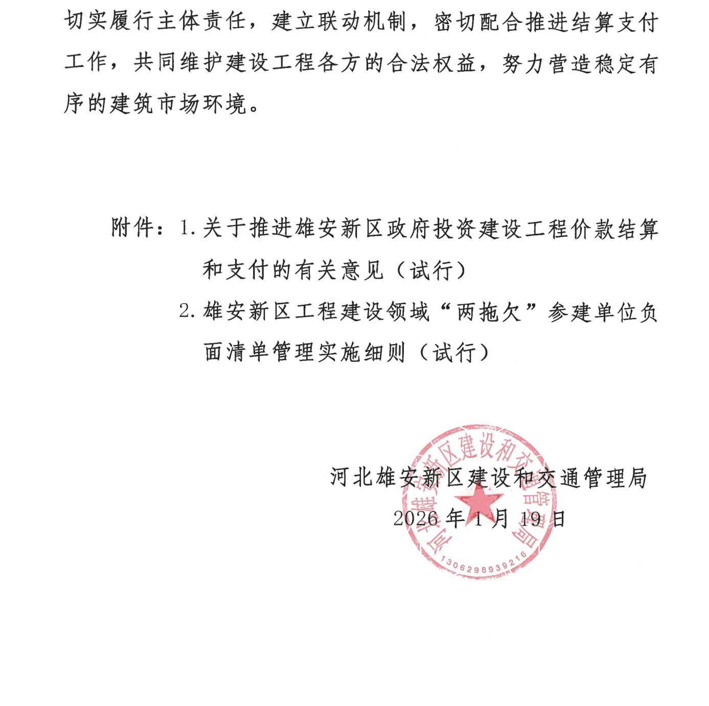 转发建交局《关于加快推进雄安新区建设工程价款结算和支付的通知》