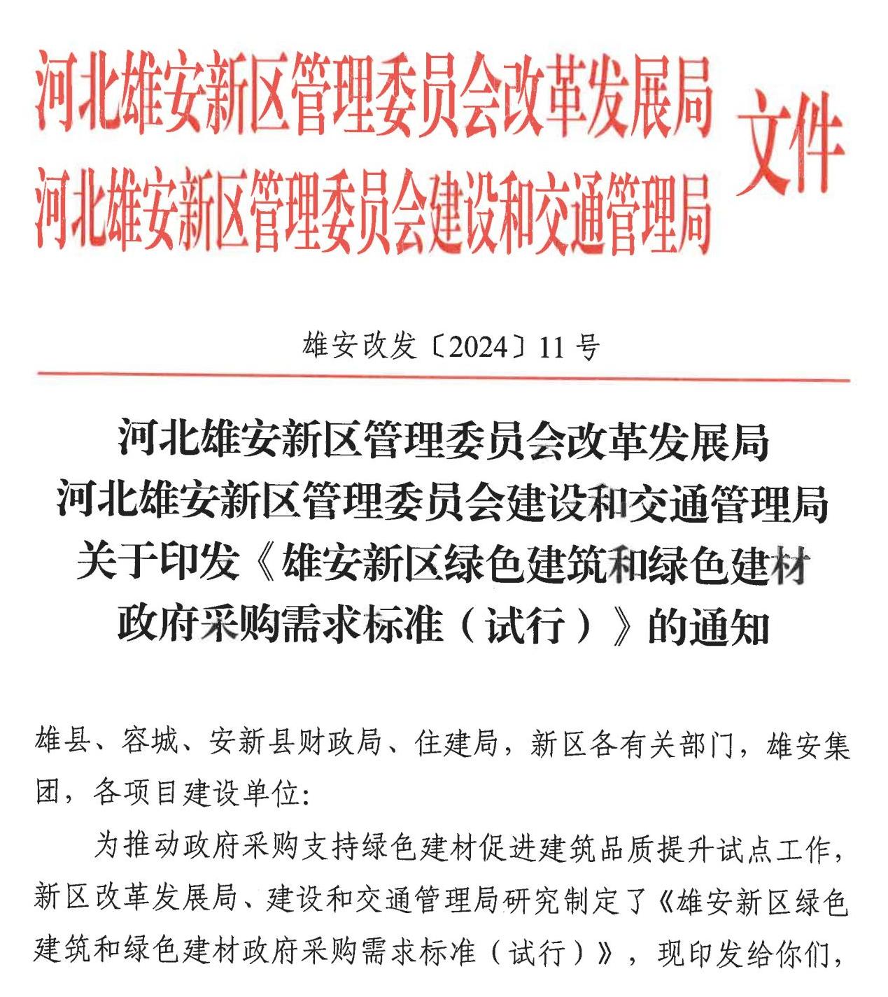 《雄安新区绿色建筑和绿色建材政府采购需求标准(试行)》