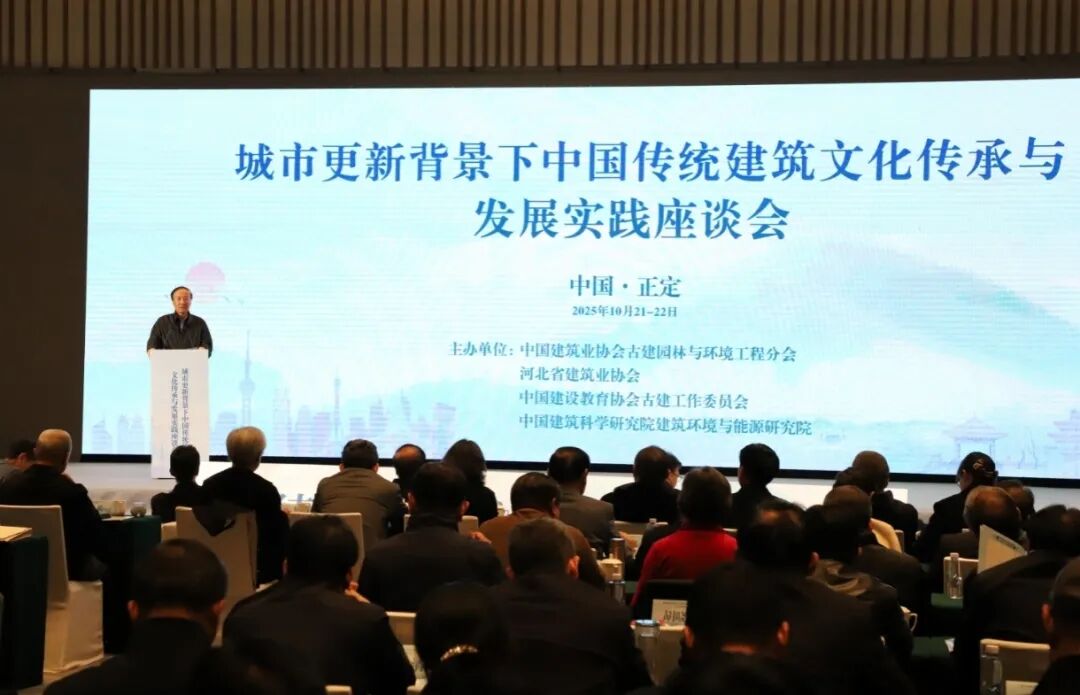 由中国建筑业协会指导,中国建筑业协会古建园林与环境工程分会、中国建设教育协会古建工作委员会、河北省建筑业协会、中国建筑科学研究院建筑环境与能源研究院共同主办的城市更新背景下中国传统建筑文化传承与发展实践座谈会于2025年10月21日至22日在河北正定召开。