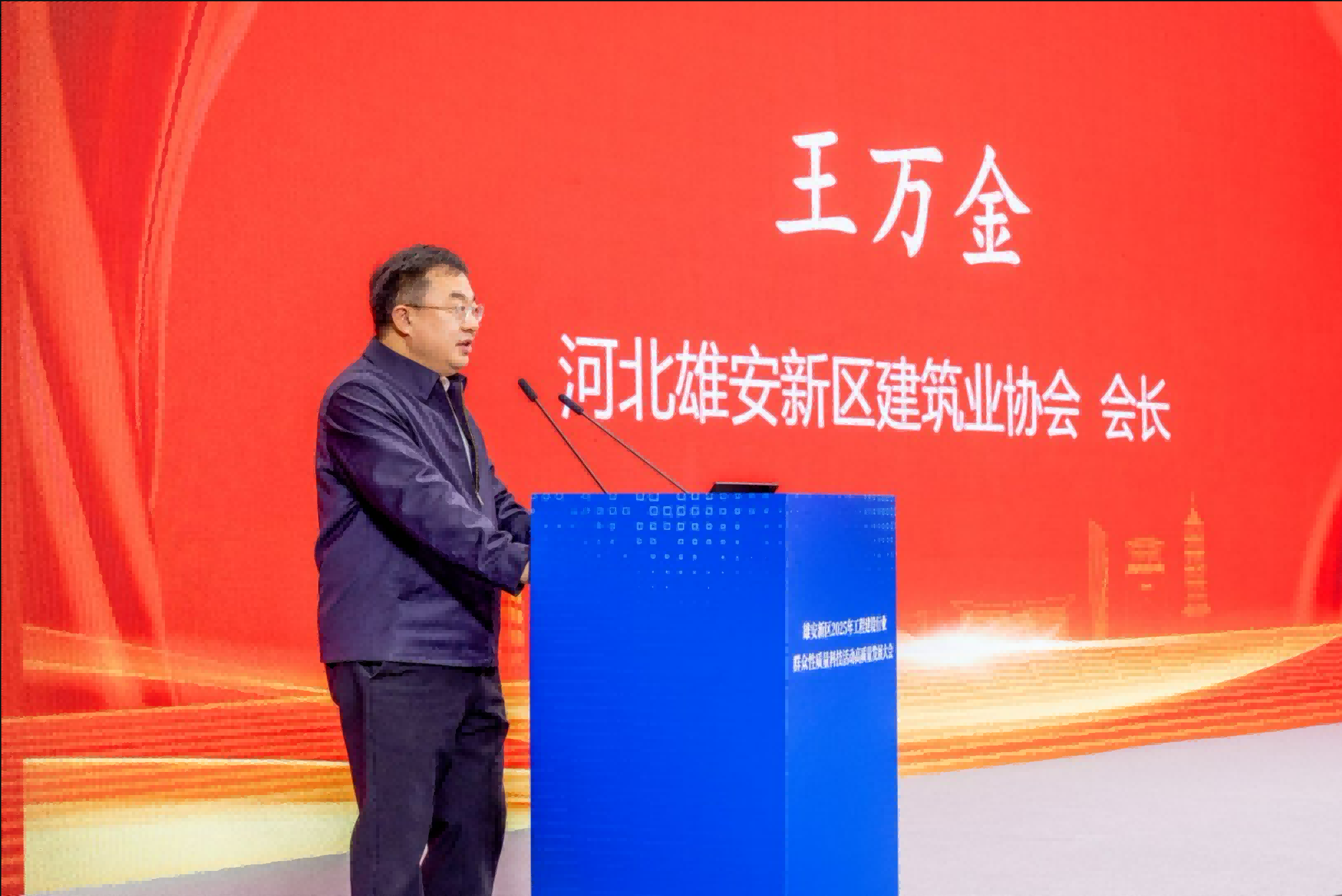 河北雄安新区建筑业协会会长王万金在致辞中表示,本次大会共征集参评成果近280项,展现了新区建设者投身科技创新的积极态势。雄安新区作为千年大计,工程建设行业应始终将质量与科技作为核心竞争力,充分展现了行业投身质量科技创新的热情与活力。他强调,面对雄安新区建设的关键阶段,全行业要坚守质量初心、坚持科技赋能、深化协同合作,共同为建设质量强国、打造雄安质量标杆贡献智慧和力量。