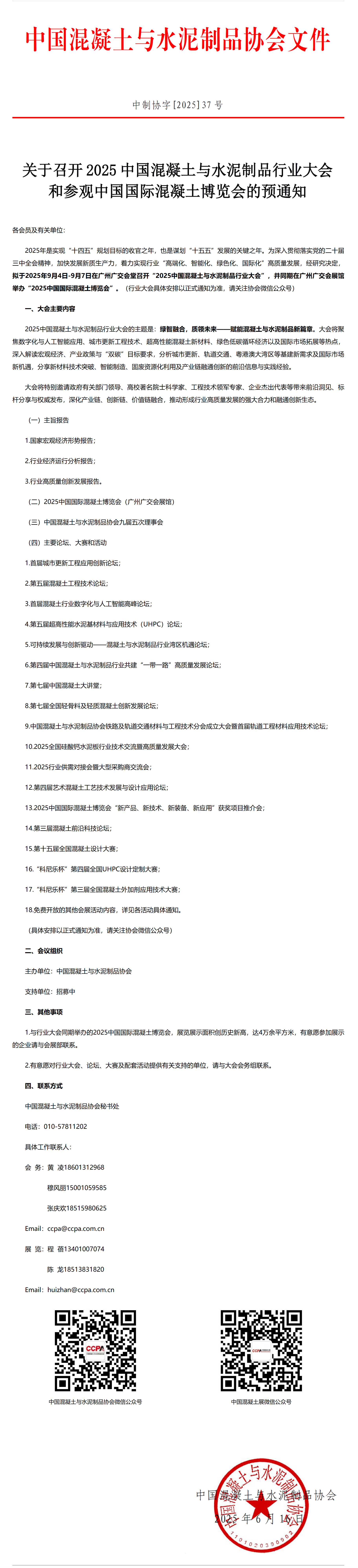 转发中国混凝土与水泥制品协会《关于召开2025中国混凝土与水泥制品行业大会和参观中国国际混凝土博览会的预通知》