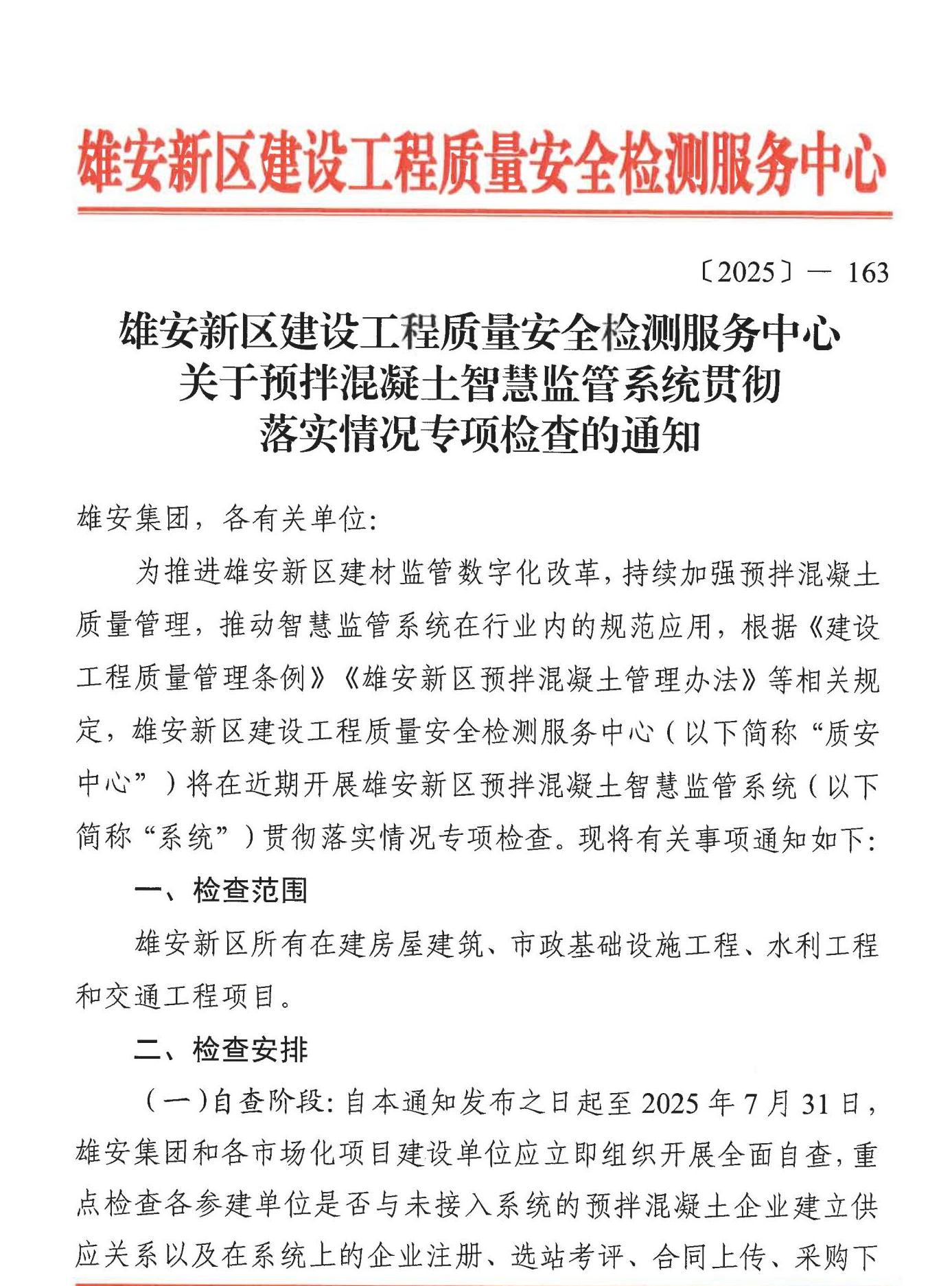转发质安中心《关于预拌混凝土智慧监管系统贯彻落实情况专项检查的通知》