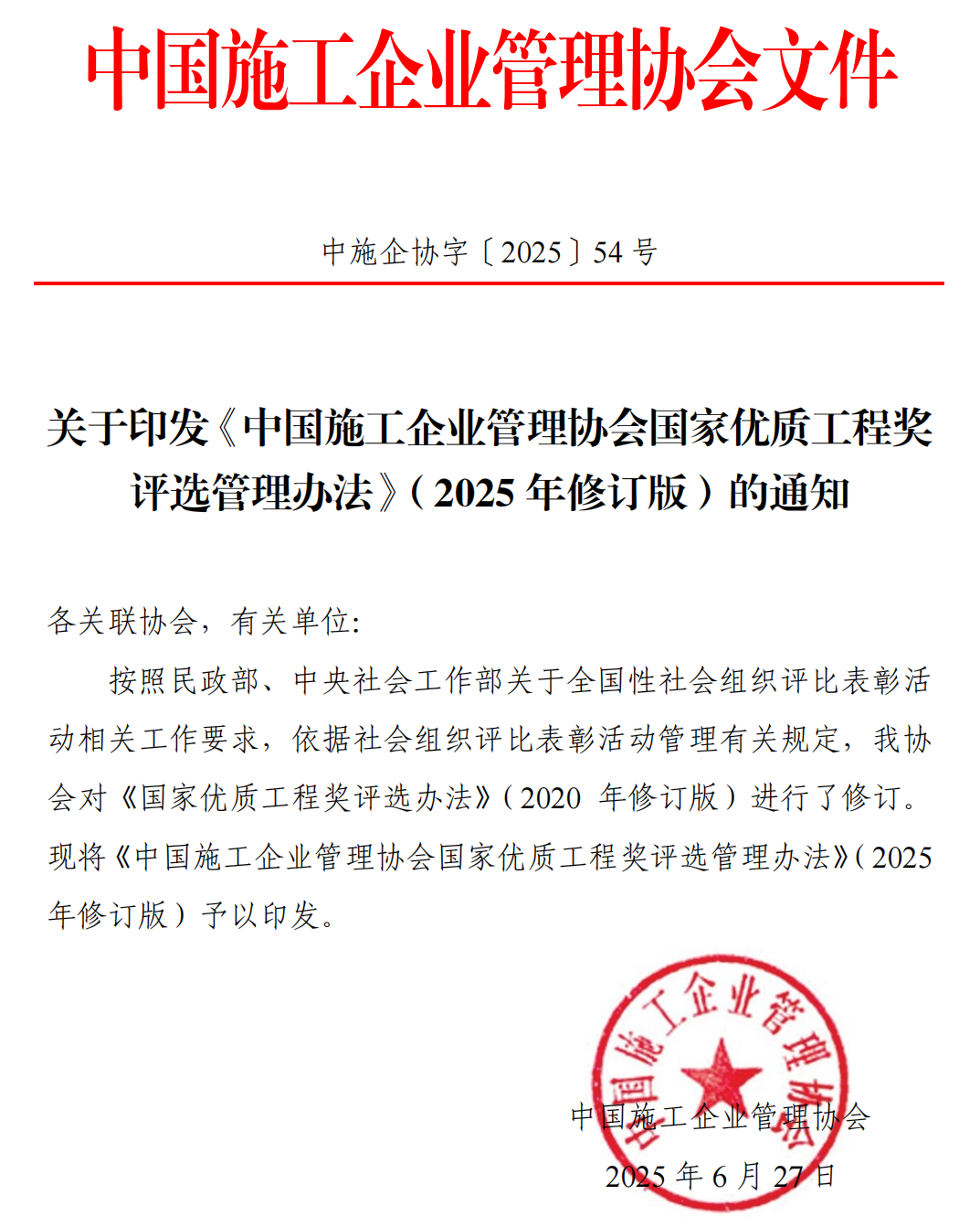 附件1:关于印发《中国施工企业管理协会国家优质工程奖评选管理办法》( 2025 年修订版)的通知