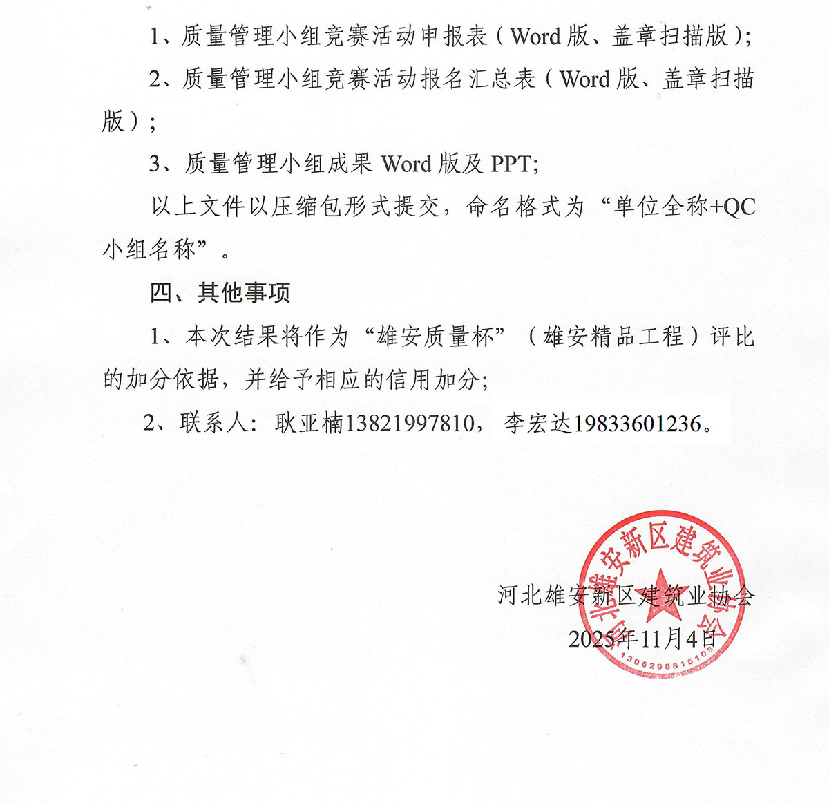 关于组织开展2025年度雄安新区建设工程质量管理小组竞赛活动的通知