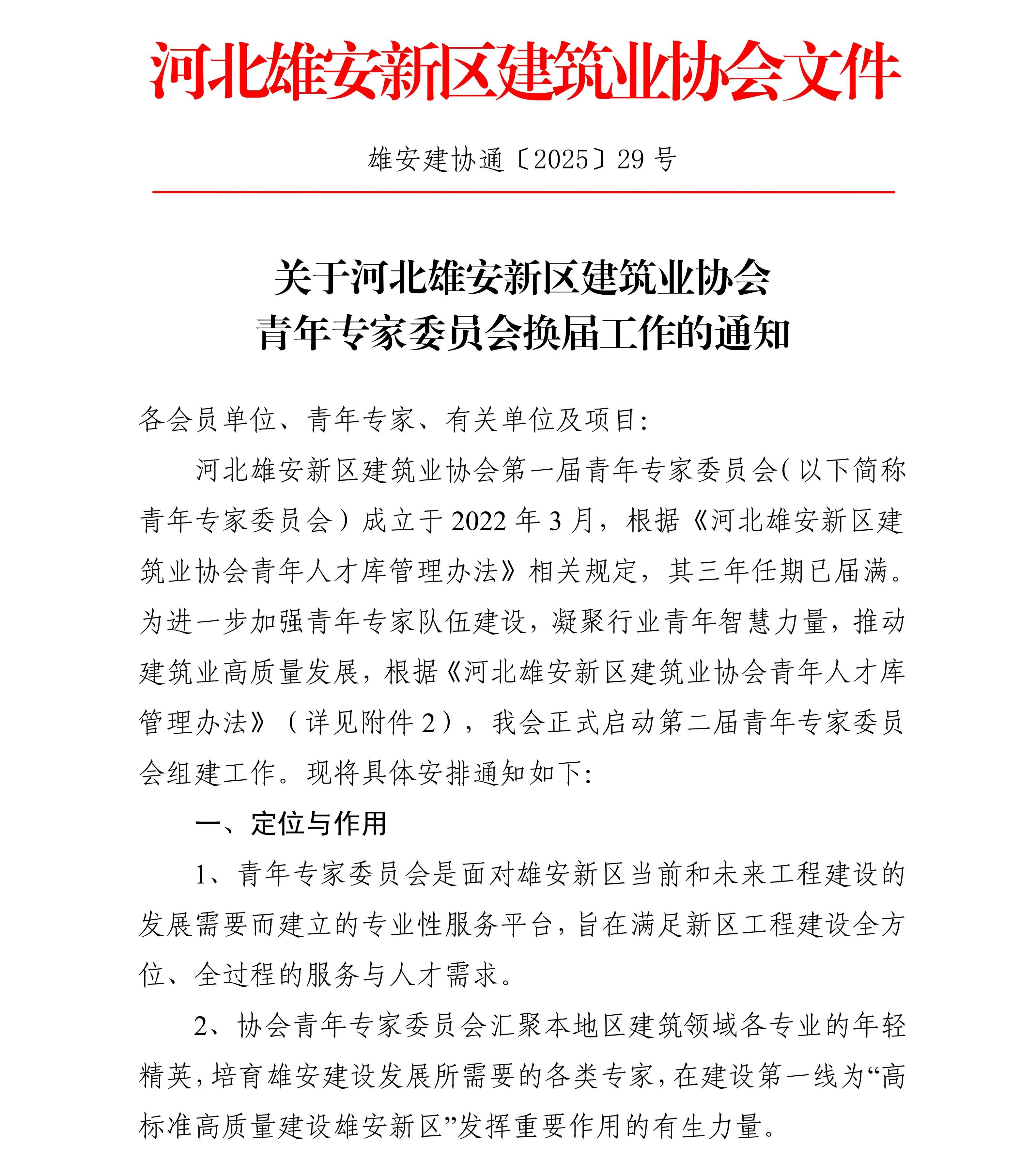 关于河北雄安新区建筑业协会青年专家委员会换届工作的通知