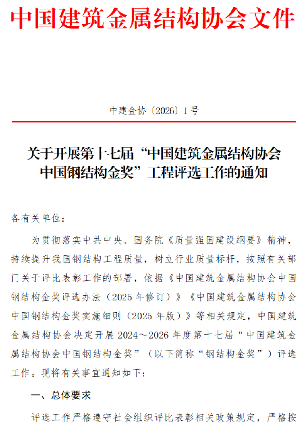 转发中国建筑金属结构协会《关于开展第十七届"中国建筑金属结构协会中国钢结构金奖"工程评选工作的通知》
