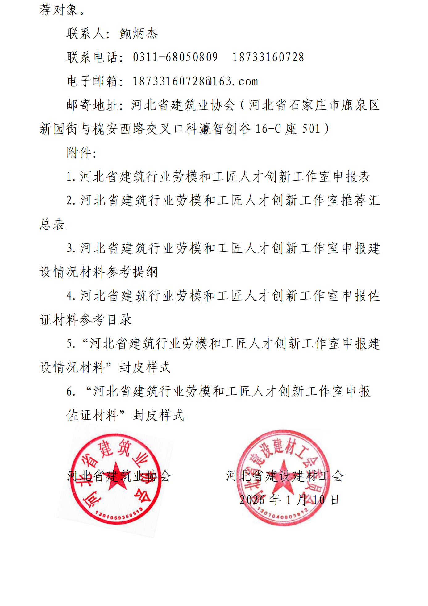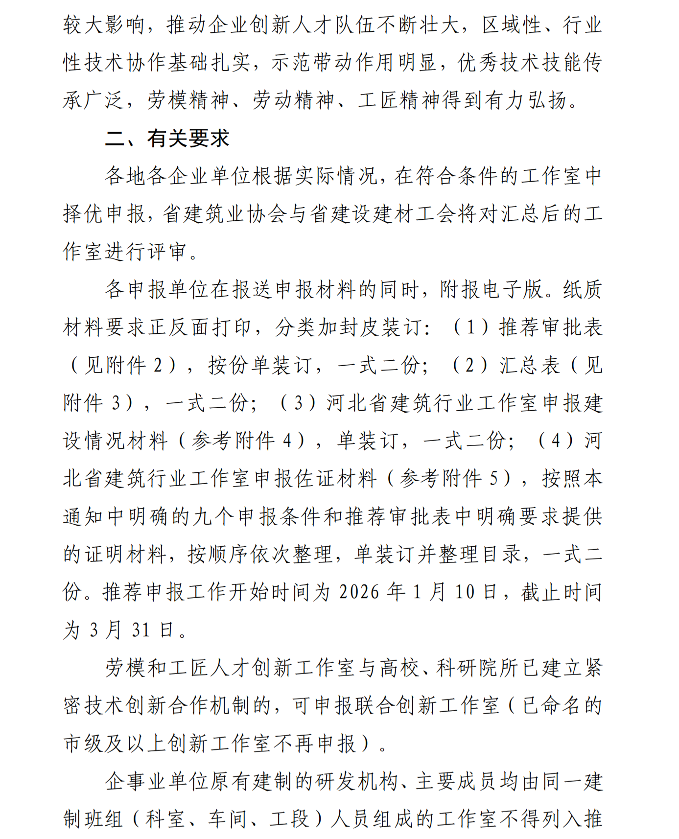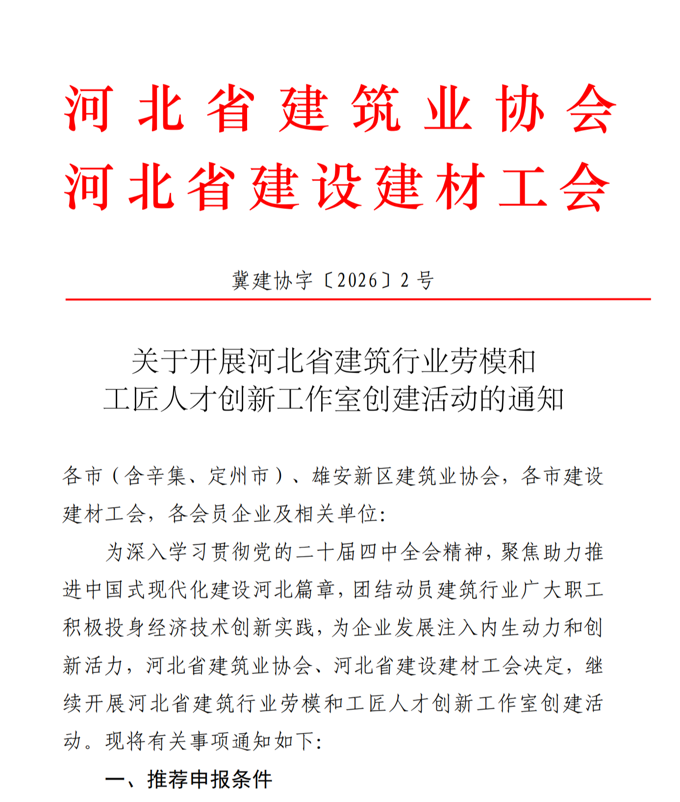 转发省建协《关于推荐申报河北省建筑行业劳模和工匠人才创新工作室的通知》