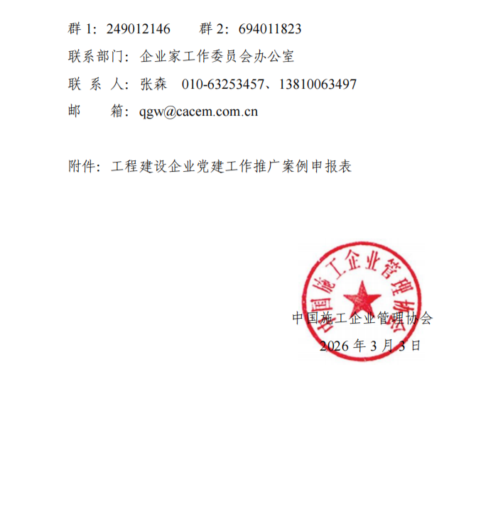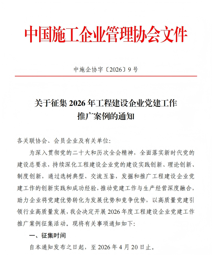 附件:中施企协《关于征集 2026 年工程建设企业党建工作推广案例的通知》