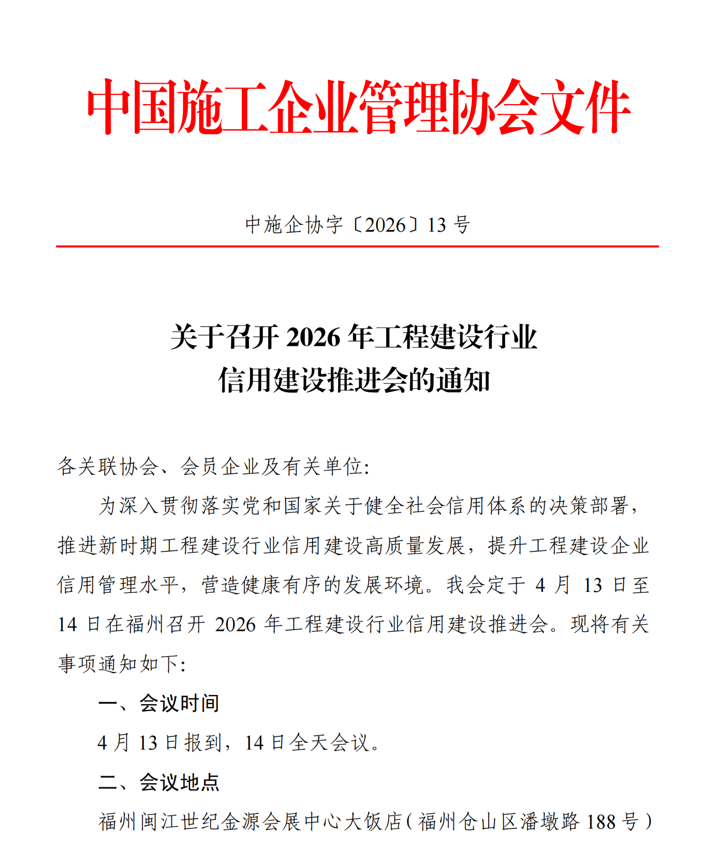 转发中施企协《关于召开 2026 年工程建设行业信用建设推进会的通知》